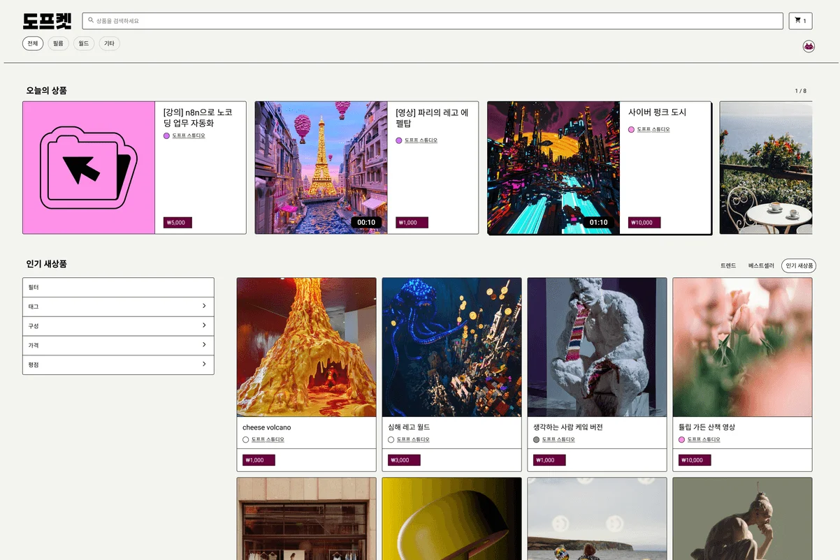 퇴근 후, 주말마다 만든 템플릿, 이제 도프켓에서 바로 수익으로 전환하세요.